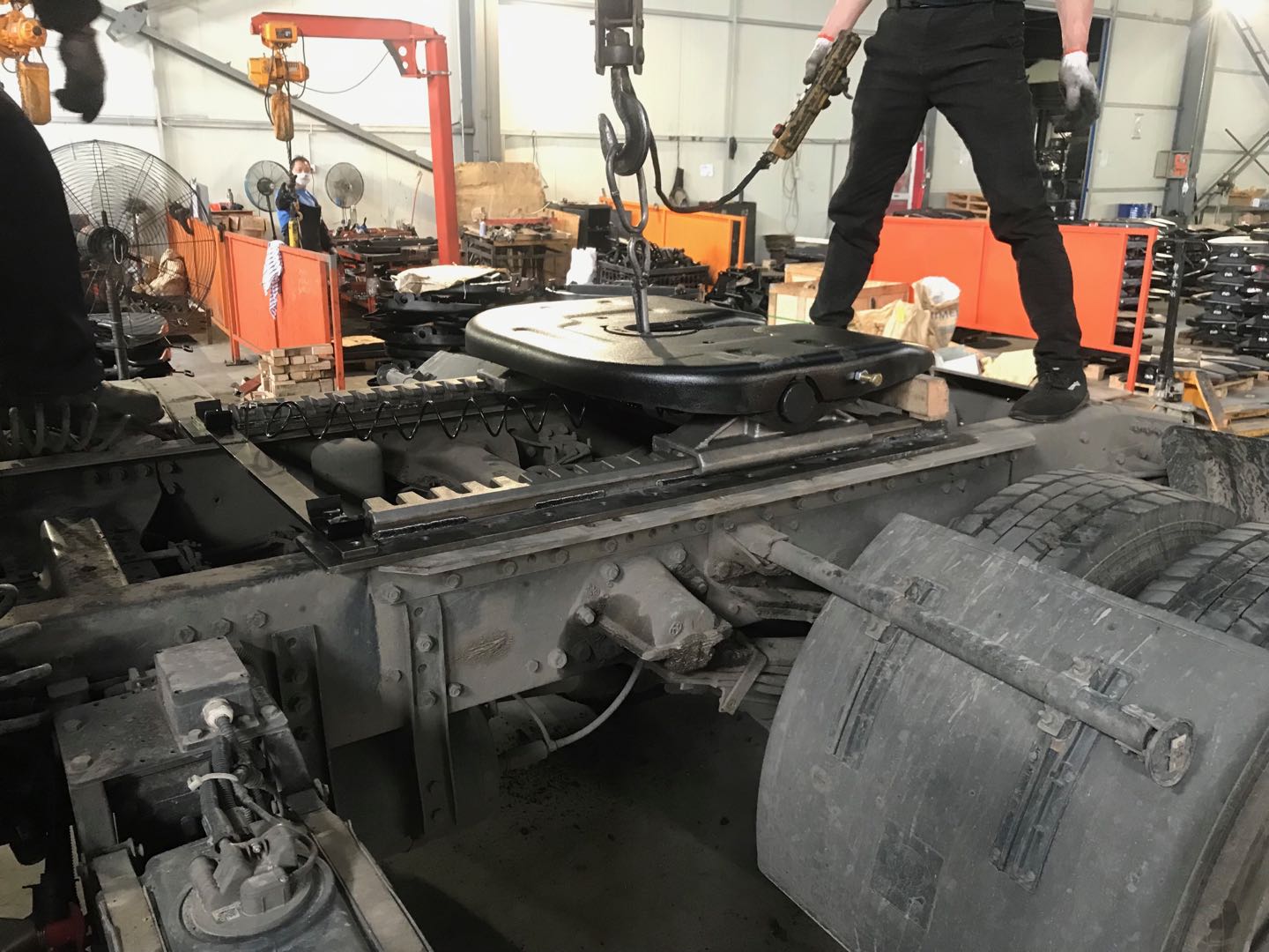 我司研發(fā)部門(mén)經(jīng)過(guò)長(zhǎng)時(shí)間的研發(fā)試驗(yàn)研制出了國(guó)內(nèi)首臺(tái)移動(dòng)牽引座,現(xiàn)已裝車(chē)完成載重試驗(yàn),下一步將進(jìn)入耐久性測(cè)試階段